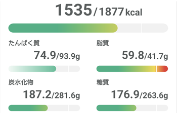 ちなみにこれは筋トレとランニングをした日の目標値で、オフの日は少し控えめ。